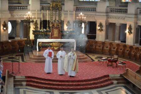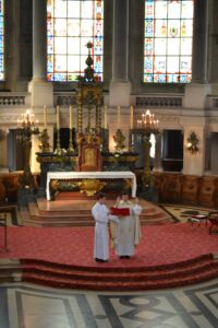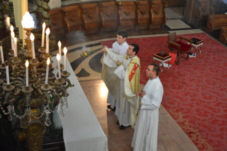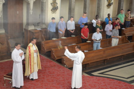 Après l’entrée en silence du célébrant et l’introduction a capella, le Père Emmanuel Goulard, supérieur du séminaire, a prononcé la prière de bénédiction :