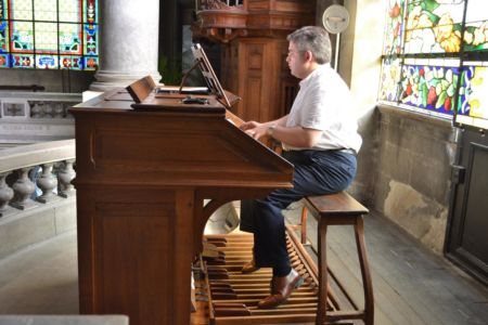 Puis, après avoir encensé l’orgue, dans un grand silence, le prêtre a invité l’orgue à jouer. A chacune des huit invitations, l’organiste Nicolas Trotin, a répondu par une improvisation qui en illustrait le contenu :