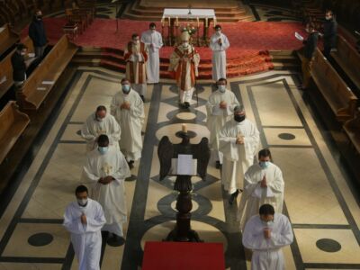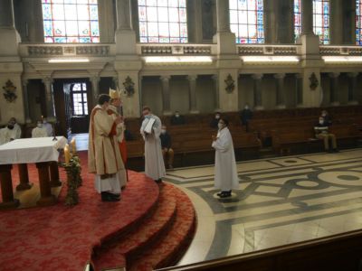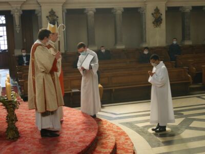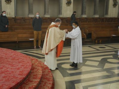 Encore dans la joie de Pâques, la communauté du Séminaire a accueilli en ce 8 avril le nouvel Evêque de Créteil qui a pu rencontrer les 5 séminaristes de son diocèse actuellement en formation au Séminaire Saint-Sulpice. Au cours de l’Eucharistie, Mgr Dominique BLANCHET a célébré l’admission d’ARSON, originaire de Madagascar, parmi les candidats au ministère pour le diocèse de Créteil.