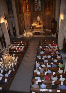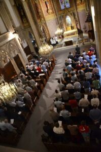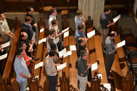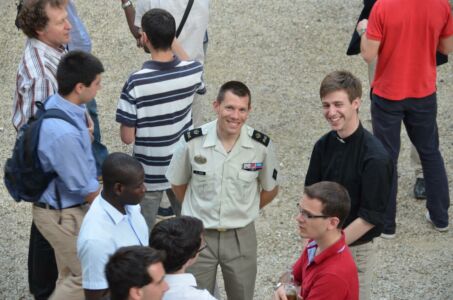 Le jeudi 1er juin en soirée, a eu lieu la traditionnelle rencontre annuelle des séminaires d’Île-de-France. Quelques jours seulement après avoir quitté le terrain de foot, nous nous retrouvions déjà , cette fois-ci accueillis par le séminaire du diocèse aux Armées françaises, rue Notre-Dame des Champs, Paris 6è. Nous avons eu la joie de revoir nos frères en formation dans les différents séminaires d’Île-de-France (Armées françaises, Carmes, Mission de France, Paris, Versailles et Saint-Sulpice d’Issy-les-Moulineaux) pour un temps de prière et de rencontre. Nous avons prié dans la magnifique chapelle des Soeurs du Bon Secours avant une présentation rapide des caractéristiques propres de la formation des séminaristes aux armées et des missions qui attendent les futurs ordonnés de l’année ! S’en est suivi un temps convivial dans les jardins de la maison Saint-Louis avant un retour à  la chapelle pour l’office des Complies et un départ vers nos divers lieux de formations respectifs.
