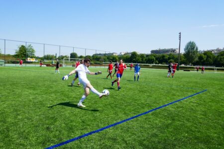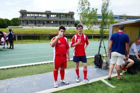 Notre entrainement hebdomadaire du jeudi après-midi au stade Alain Mimoun d’Issy-les-Moulineaux, et notre formation humaine, communautaire et fraternelle, ont finalement payé : nous avons passé les qualifications et sommes arrivés jusqu’en quart de finale, tant pour le football que pour la pétanque ! Soutenus tout au long des matchs par une mascotte panda, et malgré les blessures, nous avons ainsi éprouvé un vrai esprit d’équipe à travers les matchs.